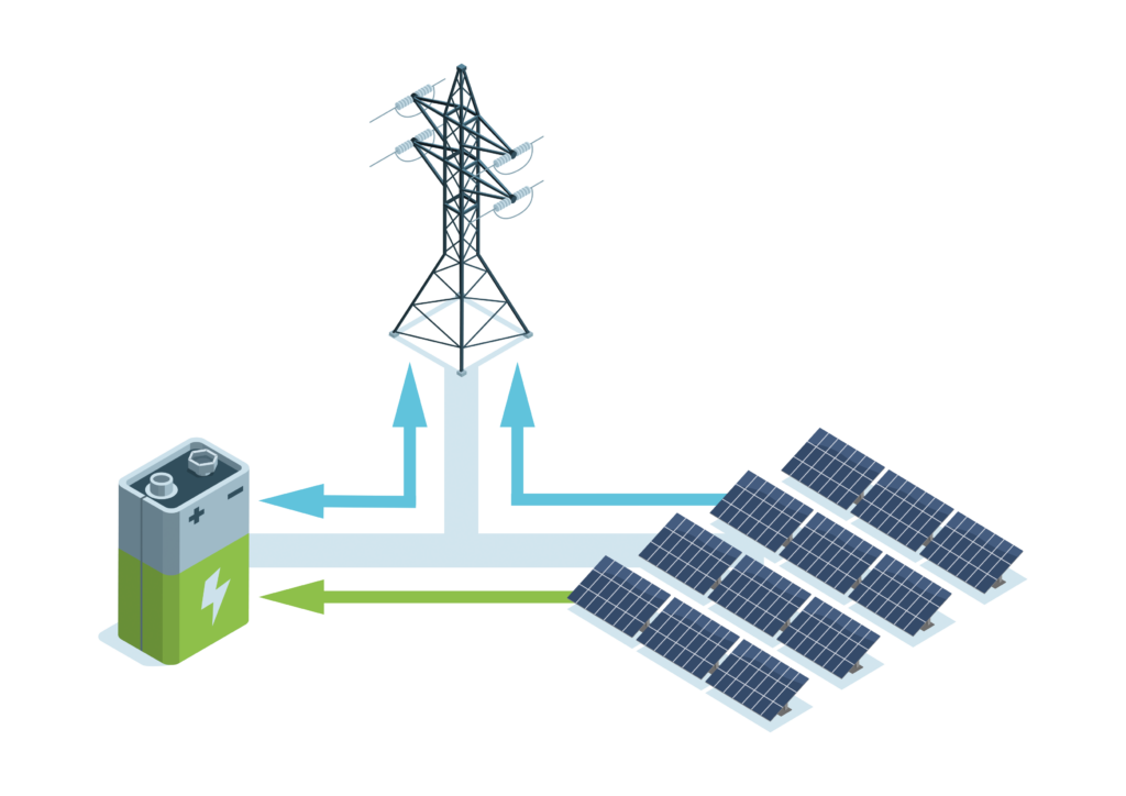 Benefits: shared grid connection point, independent operation, enhanced value of solar electricity (at any time of day), improved self‑consumption and strengthened grid stability.